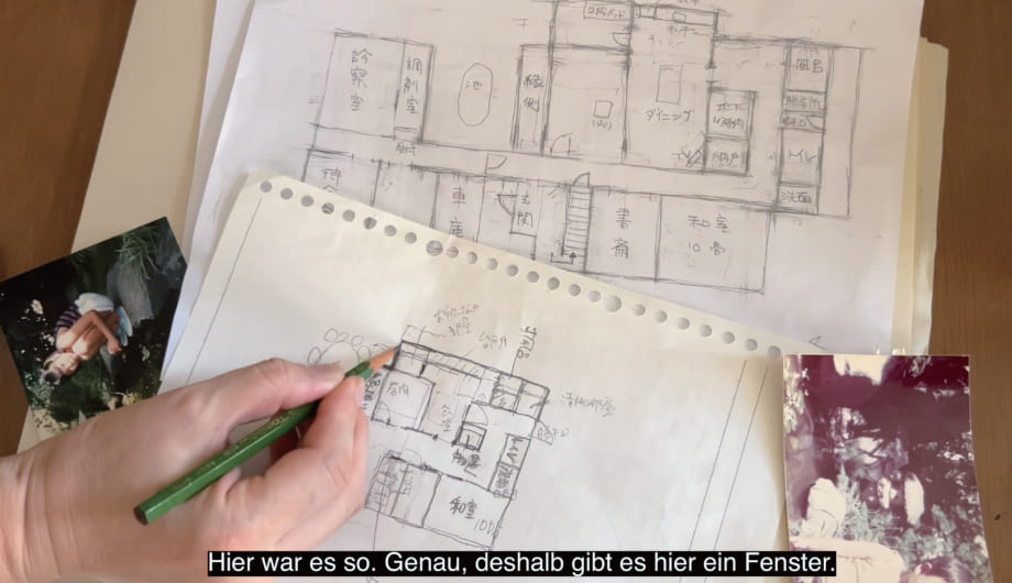 本作では、その再現された平面図、祖父母の家の前で撮影された当時の写真、